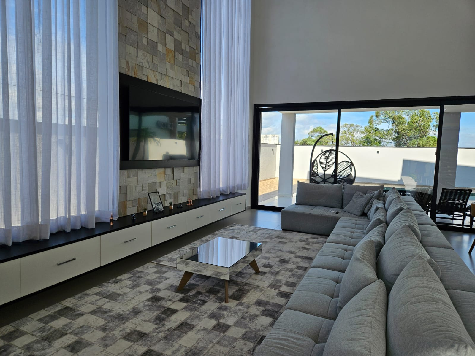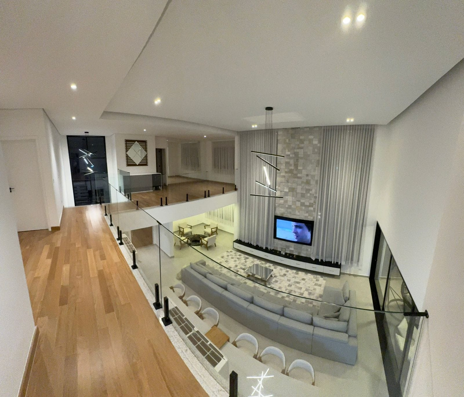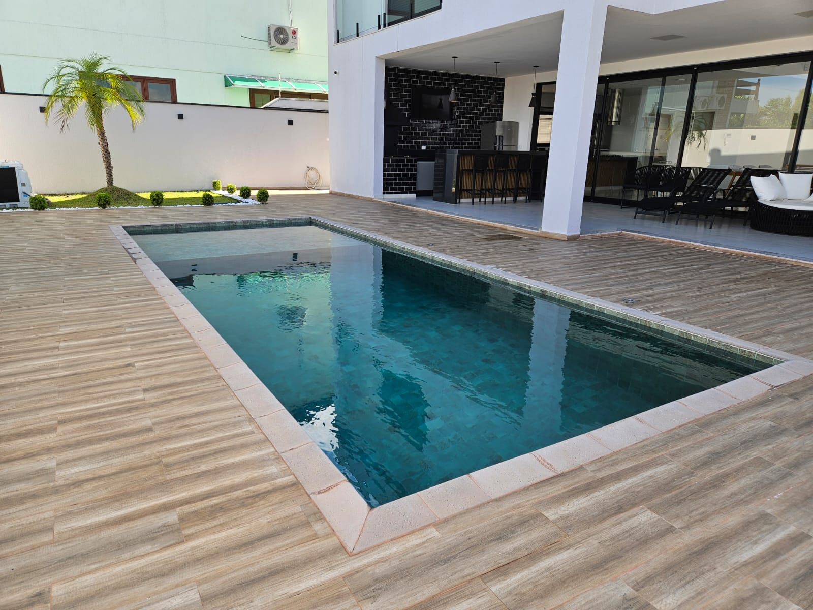 Sobrado espetacular com 4 suites (sendo uma master com closet), rica em armários planejados, sala 3 ambientes (estar, visita, jantar), cozinha americana . Dependência de empregada com WC. Lavanderia.Designer ultra moderno. Ricamente mobiliada. Pé direito alto. Espaço aberto para a parte superior. Rica em paredes com vidros. Quintal amplo com piscina de borda infinita com cachoeira. 06 vagas de garagem. Toda com iluminação em Led. Bairro planejado.