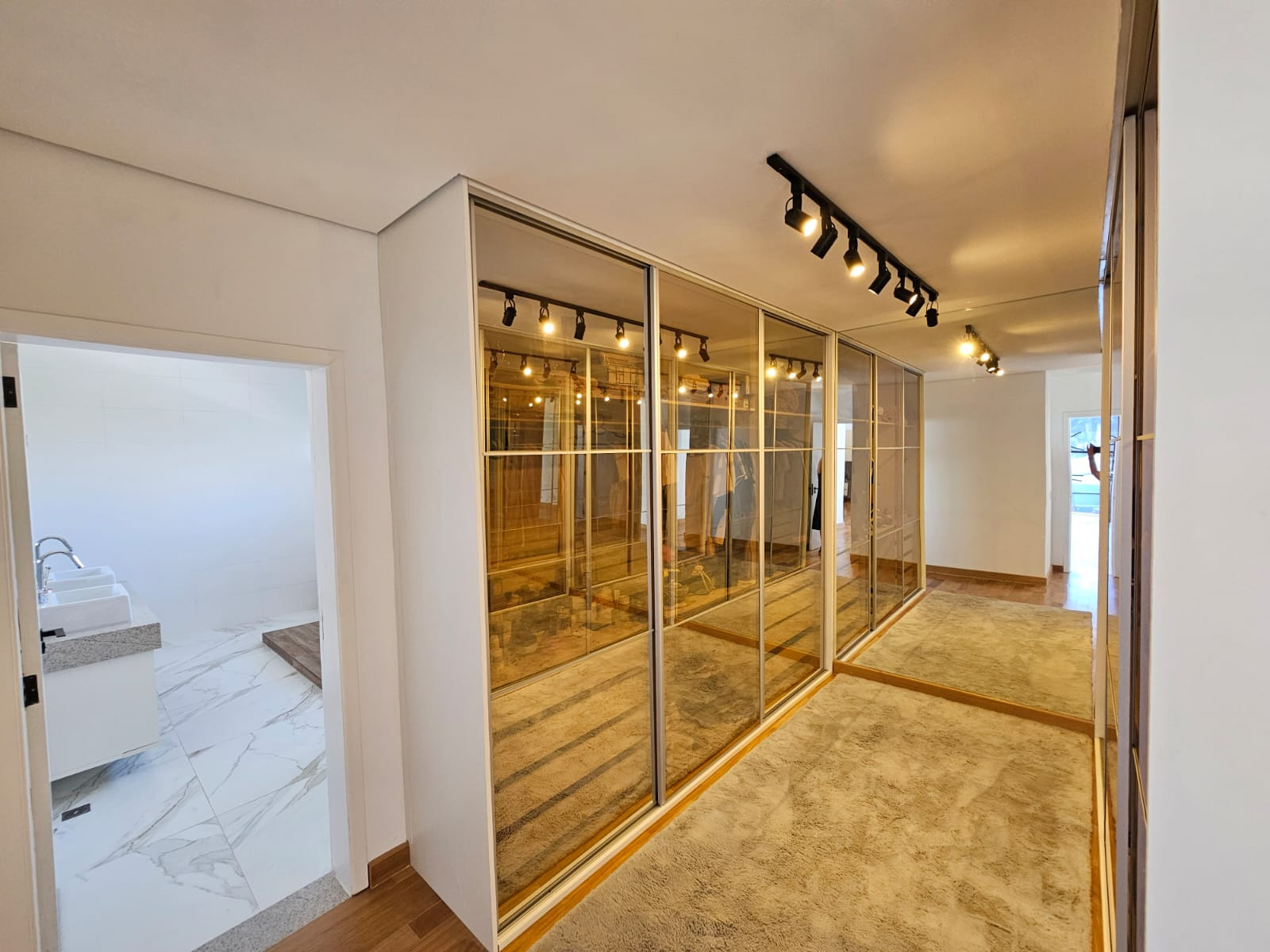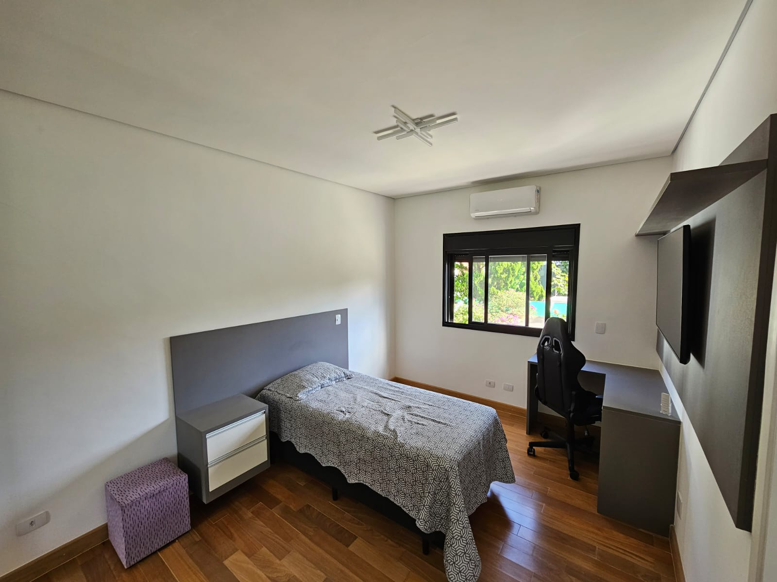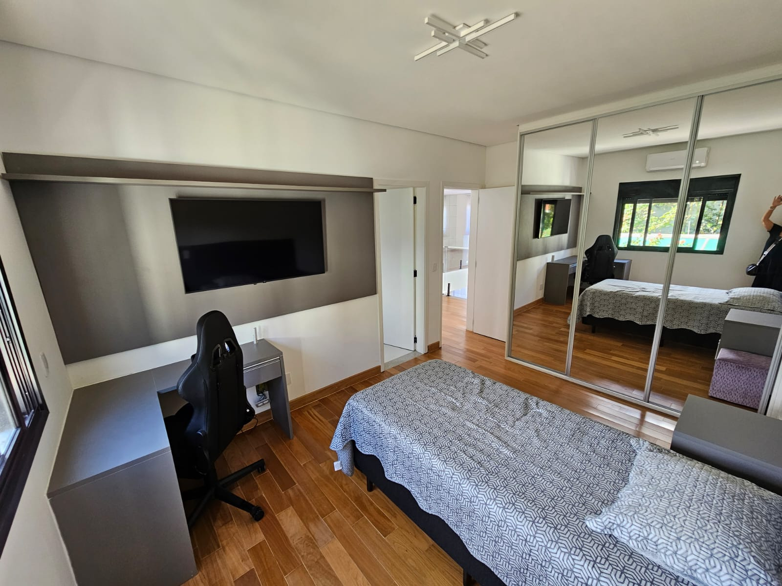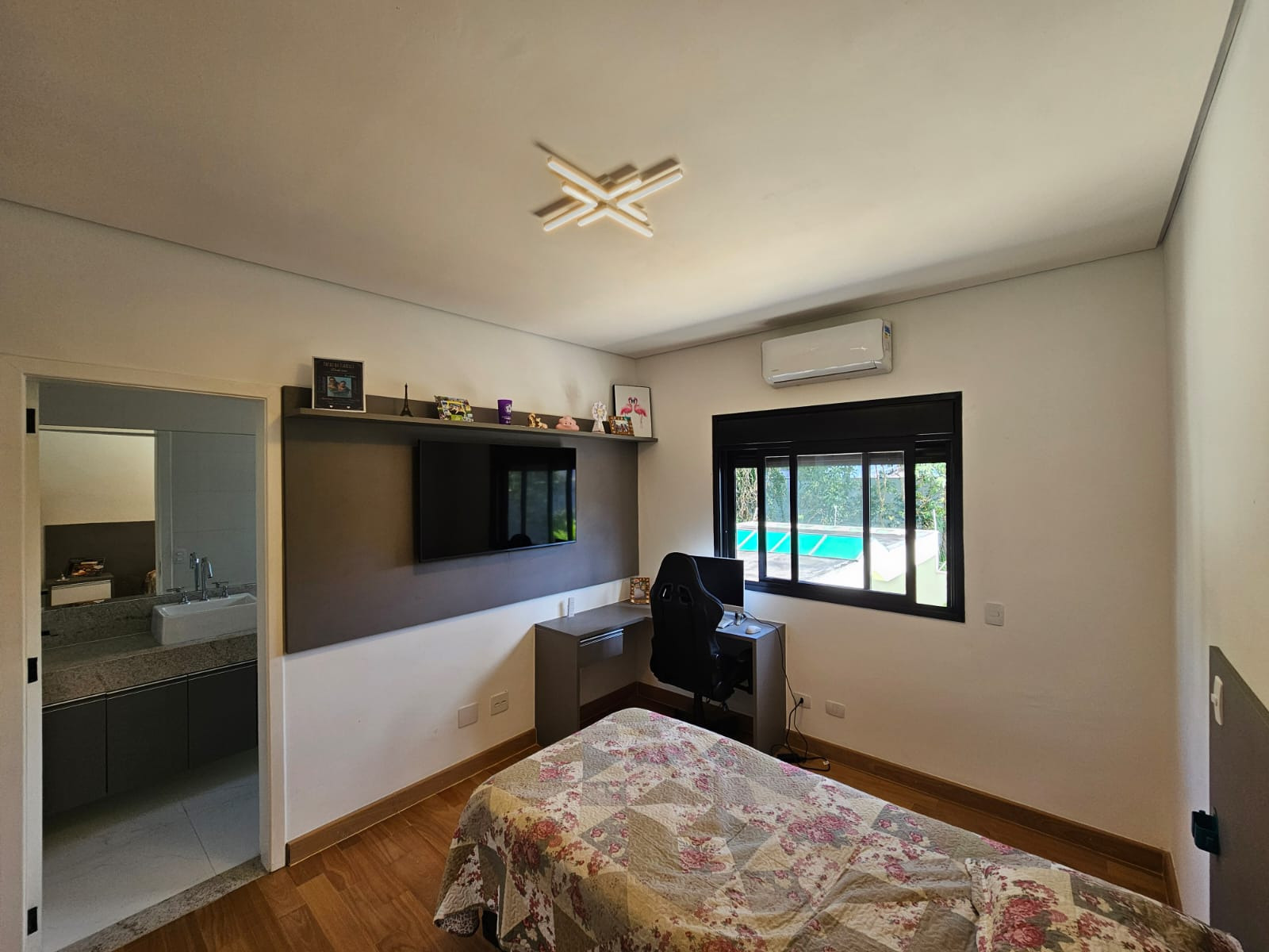 Sobrado espetacular com 4 suites (sendo uma master com closet), rica em armários planejados, sala 3 ambientes (estar, visita, jantar), cozinha americana . Dependência de empregada com WC. Lavanderia.Designer ultra moderno. Ricamente mobiliada. Pé direito alto. Espaço aberto para a parte superior. Rica em paredes com vidros. Quintal amplo com piscina de borda infinita com cachoeira. 06 vagas de garagem. Toda com iluminação em Led. Bairro planejado.