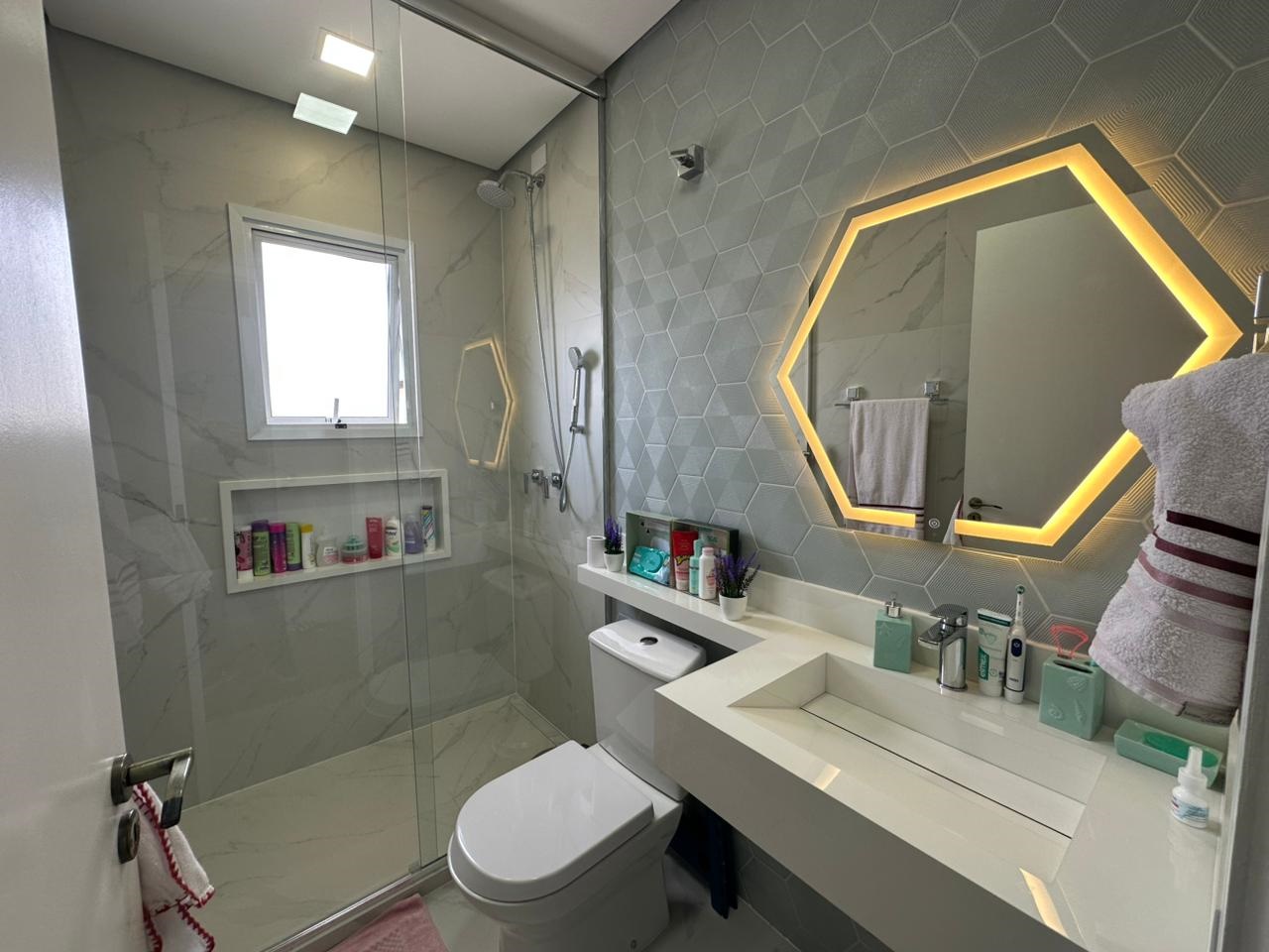03 dormitórios (sendo uma suite),WC Social, Lavabo, sala dois ambientes, cozinha americana. Lavanderia. Espaço gourmet. 02 vagas de garagem. Rico em armários planejados.